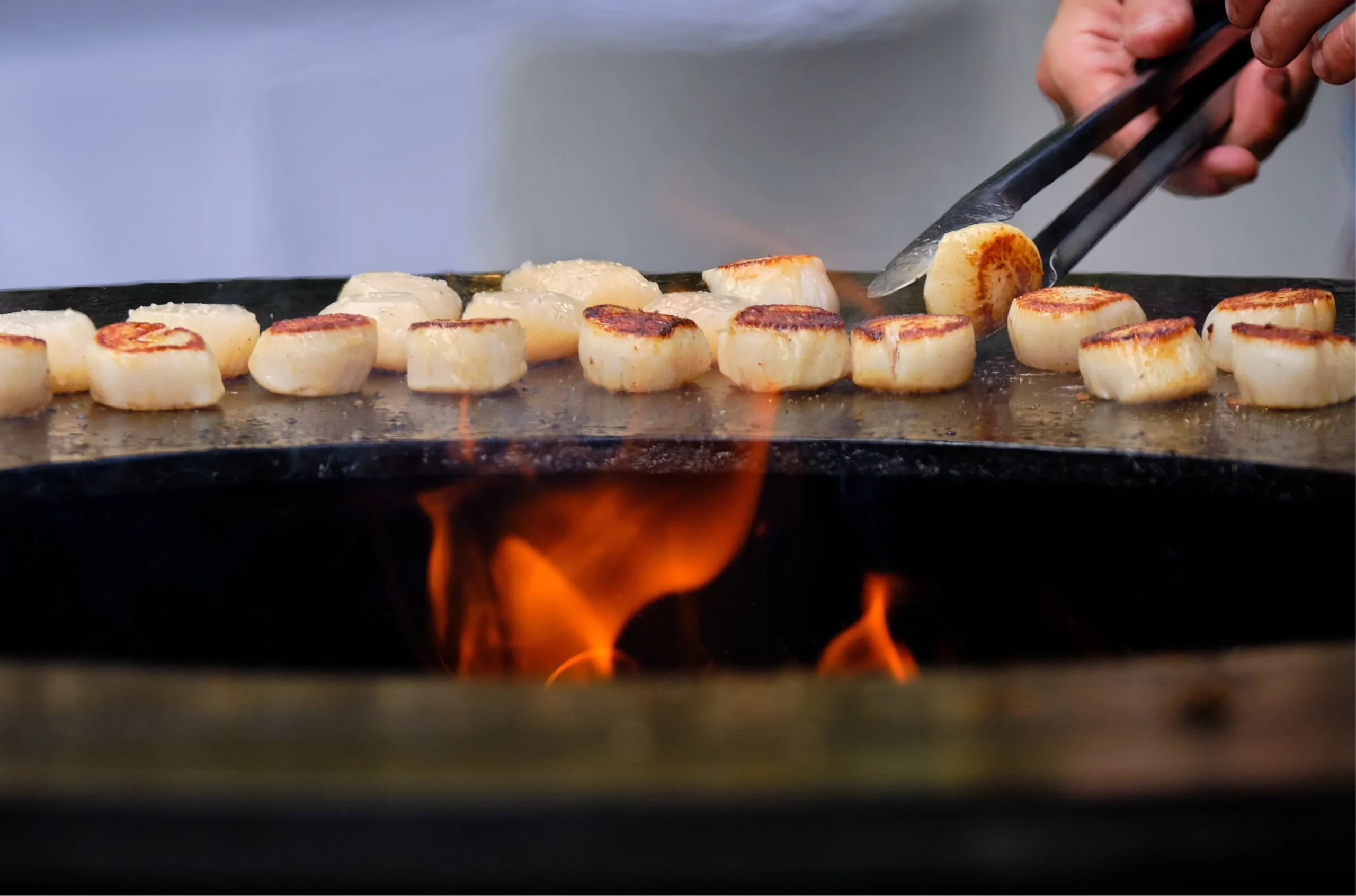 Quand les beaux jours s’installent, à la mi-juin tous les midis, le braséro s’allume. Chaque convive choisit sa pièce de viande ou son poisson, confiée au chef pour une cuisson succulente en direct.